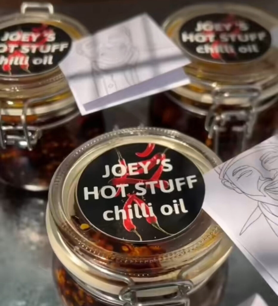 Deze chili olie is begonnen als voor de lekker erbij. Al jaren maakte Joey de chilli olie voor thuis. Maar door de vraag van zijn gasten besloot hij het in een potje uit te delen. Wat begon als iets kleins is inmiddels uitgegroeid naar vele potjes!